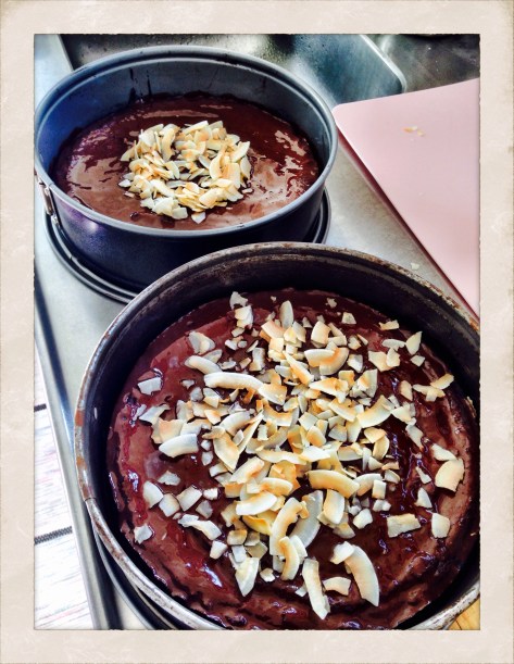 Smält kokosoljan, vispa äggen fluffiga. Blanda cashewmjölken, cashewmjölet och kokosoljan med äggvispet och rör om.Blanda de torra ingredienserna i en skål för sig. Häll i det i äggblandningen.