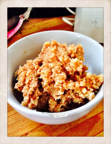 2 dl cashewnötsmjöl ( geggan som blir över när man gör cashewmjölk) (1 cup cashew flour, the rest product you get when you make cashew milk)