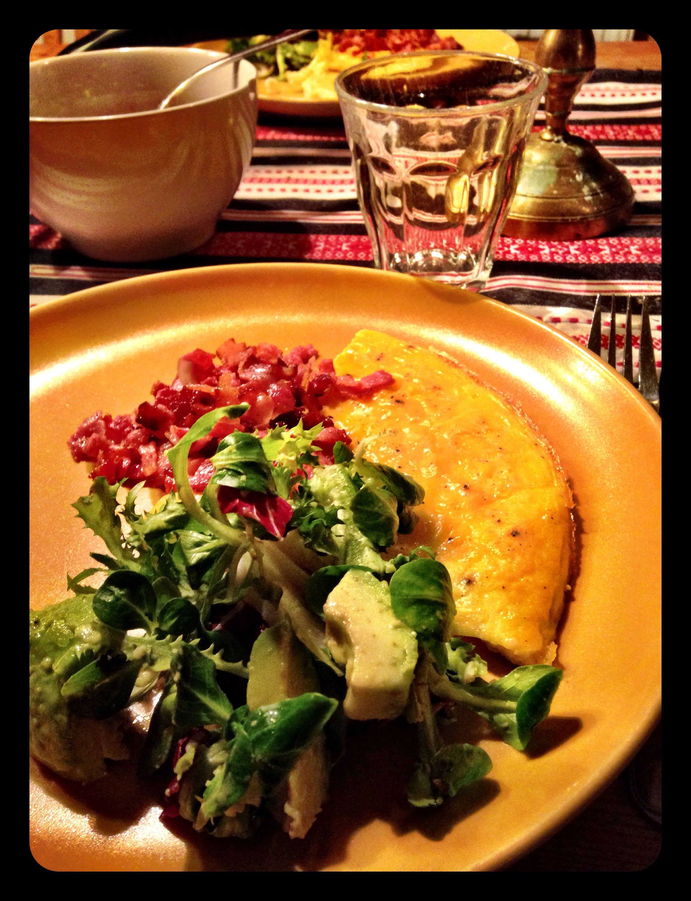 Så det blev en omelett med sallad och lite bacon på sidan om.
