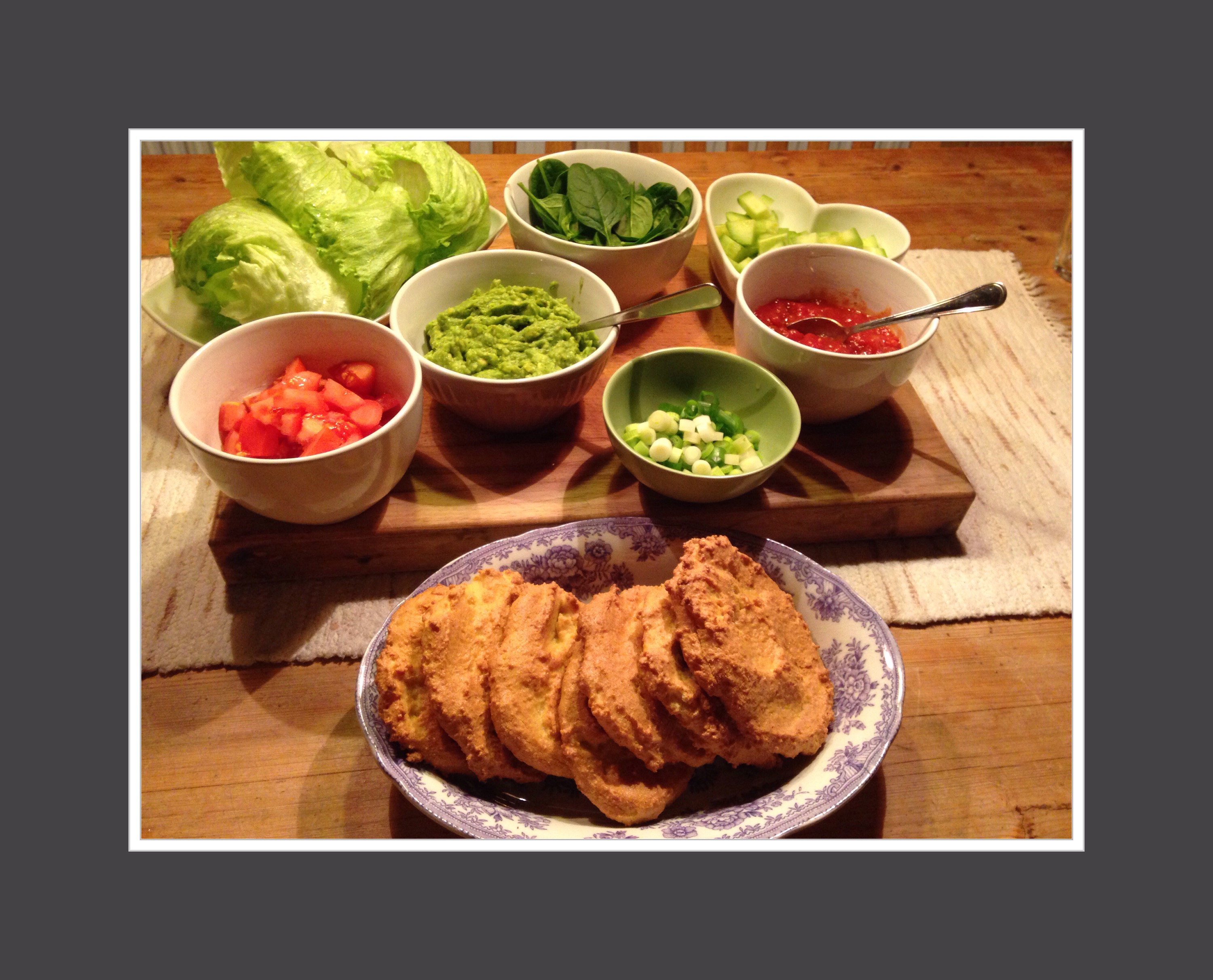 Kyckling med sötpotatis och morötter. Spenatsallad med vårlök och en basilikamajonäs.