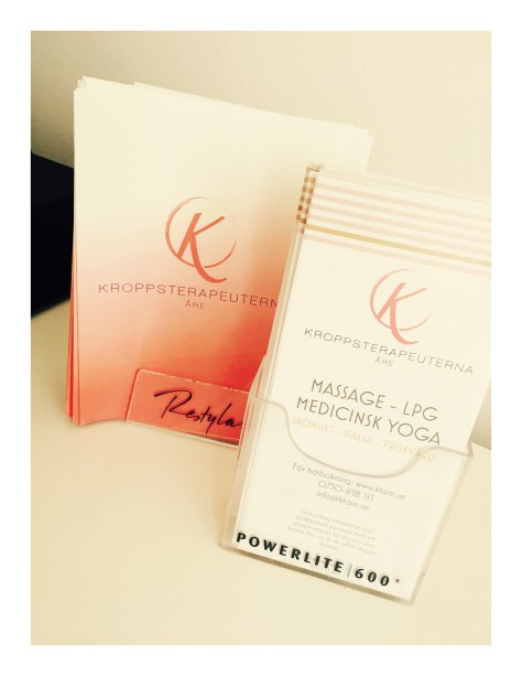 Today I tested a new experience, LPG massage. I was granted funds that make this possible. Have been curious to try connective tissue massage for a long time, but as usual ”the mom prio” for this cost is far down the list in our family economy. In Åre, I heard that ”Kroppsteraputerna” had a LPG machine so I booked an appointment with them.