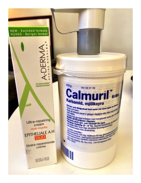 Nu har jag hittat en kräm som inte är lika fet men med högre mjölksyra som jag ska testa. ”Calmuril” sedan hittade jag ett tips på nätet om en ”A-Derma” kräm som ska verka reparerade. Värt att testa, de är inte dyra om man ser vad skönhetskrämer kostar i butik.