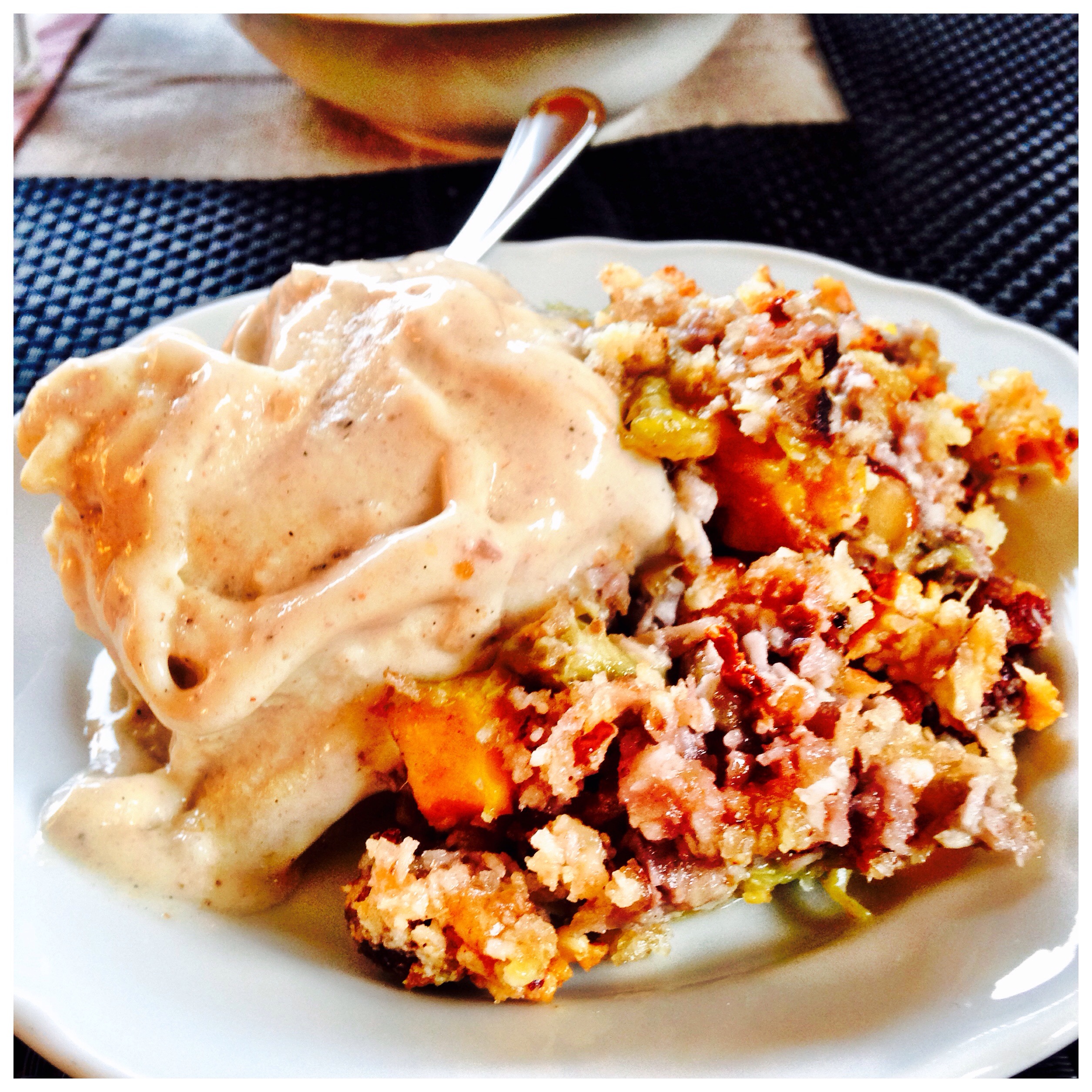 Made a pie in the weekend with rhubarb and mango. The crumb I made with coconut oil, coconut, hazelnuts, walnuts, almonds flour and a little honey.