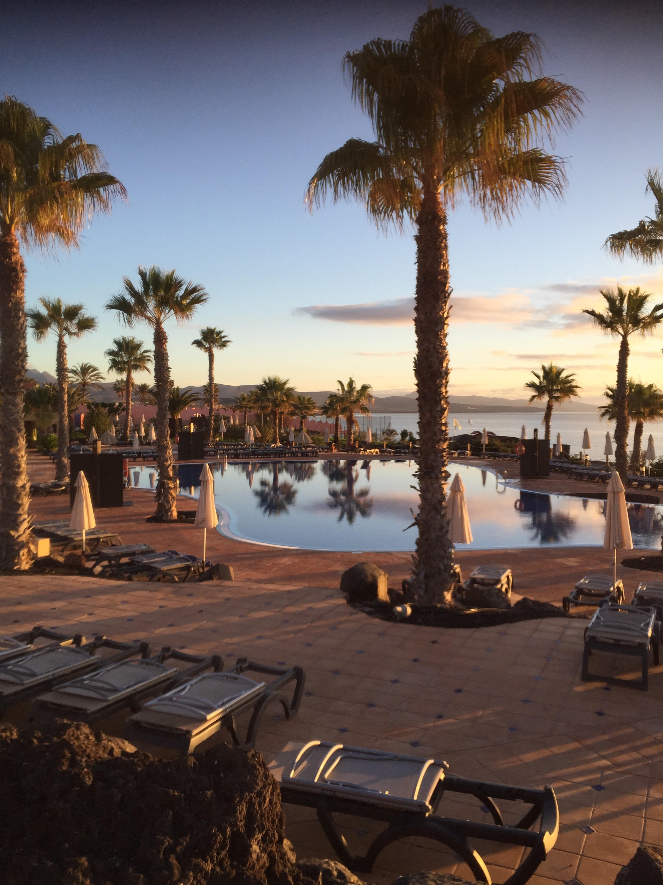 Hotellet jag bor på heter H10 Tindaya. Ett stort och välordnat hotell med massor av italienska gäster. Italienare gör att maten håller en riktigt bra nivå, trots att jag inte äter pasta, bröd eller tiramisu. Eftersom det är ett hotell med all inclusive så finns det mycket annat att välja mellan även för mig.